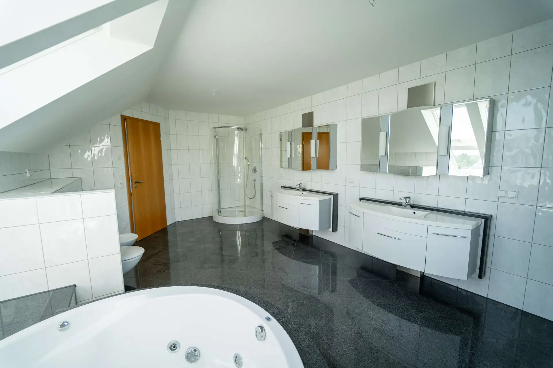 Die Ausstattung dieser Maisonettewohnung ist durchgängig hochwertig, detailverliebt und auf exklusiven Wohnkomfort ausgerichtet. Jeder Raum wurde mit Sorgfalt geplant und bietet nicht nur eine klare Ästhetik, sondern auch technische Raffinessen für ein rundum angenehmes Wohngefühl. Die gesamte Wohnung ist mit einer modernen Fußbodenheizung ausgestattet, die in Kombination mit hochwertigen Bodenbelägen für behagliche Wärme und stilvolle Raumwirkung sorgt. Elektrisch steuerbare Jalousien garantieren Licht- und Sichtschutz auf Knopfdruck – für ein Höchstmaß an Komfort und Privatsphäre. Die großzügige Einbauküche lässt keine Wünsche offen: Ausgestattet mit Markengeräten und ausreichend Arbeitsfläche, wird Kochen hier zum Vergnügen. Ein Hauswirtschaftsraum schafft dazu praktische Ordnung im Alltag. Der Wohn- und Essbereich beeindruckt durch seine Offenheit, Weitläufigkeit und den charmanten Kamin, der in den Wintermonaten für eine ganz besondere Atmosphäre sorgt. Im oberen Stockwerk dominiert der Masterbereich mit durchdachten Details: Ein eigener Balkon, ein begehbarer Kleiderschrank, eine große Abstellkammer und ein luxuriöses Masterbad mit zwei Waschbecken, Dusche, Whirlpoolwanne und Bidet schaffen eine private Wellnessoase. Ein fest installierter Tresor sorgt für zusätzliche Sicherheit. Diese Wohnung vereint stilvolles Design mit Funktionalität – perfekt für Menschen, die mehr erwarten als Standard.