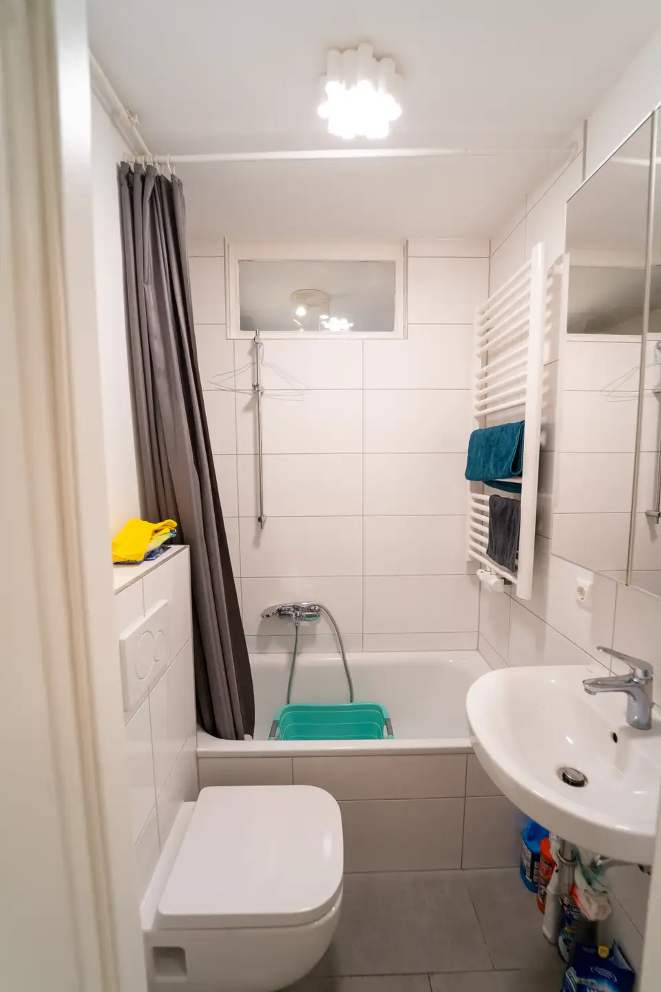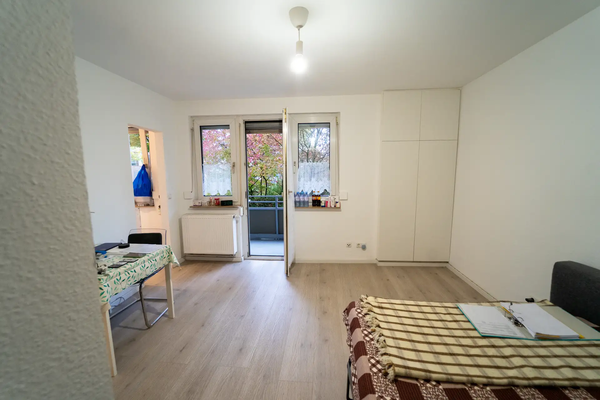 Die Wohnung präsentiert sich in einem gepflegten und modernisierten Zustand und wurde vor rund drei Jahren umfassend renoviert. Besonders hervorzuheben sind das helle, moderne Badezimmer mit Badewanne, Handtuchheizkörper und neutralen Fliesen sowie die neuwertige Einbauküche mit hochwertigen Fronten, Kochfeld, Spüle und praktischen Stauraumlösungen. Der Wohnbereich ist mit einem hellen Laminatboden ausgestattet und verfügt über eingebaute Schränke, die zusätzlichen Platz bieten. Die Wohnung wird vollmöbliert vermietet – inklusive Schlafcouch, Tisch, Stühlen und Regalen – und ist damit ideal zur Vermietung geeignet (aktuell bereits gut vermietet). Vom Wohnraum aus gelangt man auf den überdachten Balkon mit Blick ins Grüne, der an warmen Tagen zum Entspannen einlädt. Eine zentrale Heizungsanlage sorgt für angenehmen Wohnkomfort, die Fenster sind isolierverglast. Es ist ein Keller vorhanden. Insgesamt bietet die Wohnung eine gelungene Kombination aus kompakter Größe, moderner Ausstattung und hoher Funktionalität – perfekt für Singles, Pendler oder Kapitalanleger.