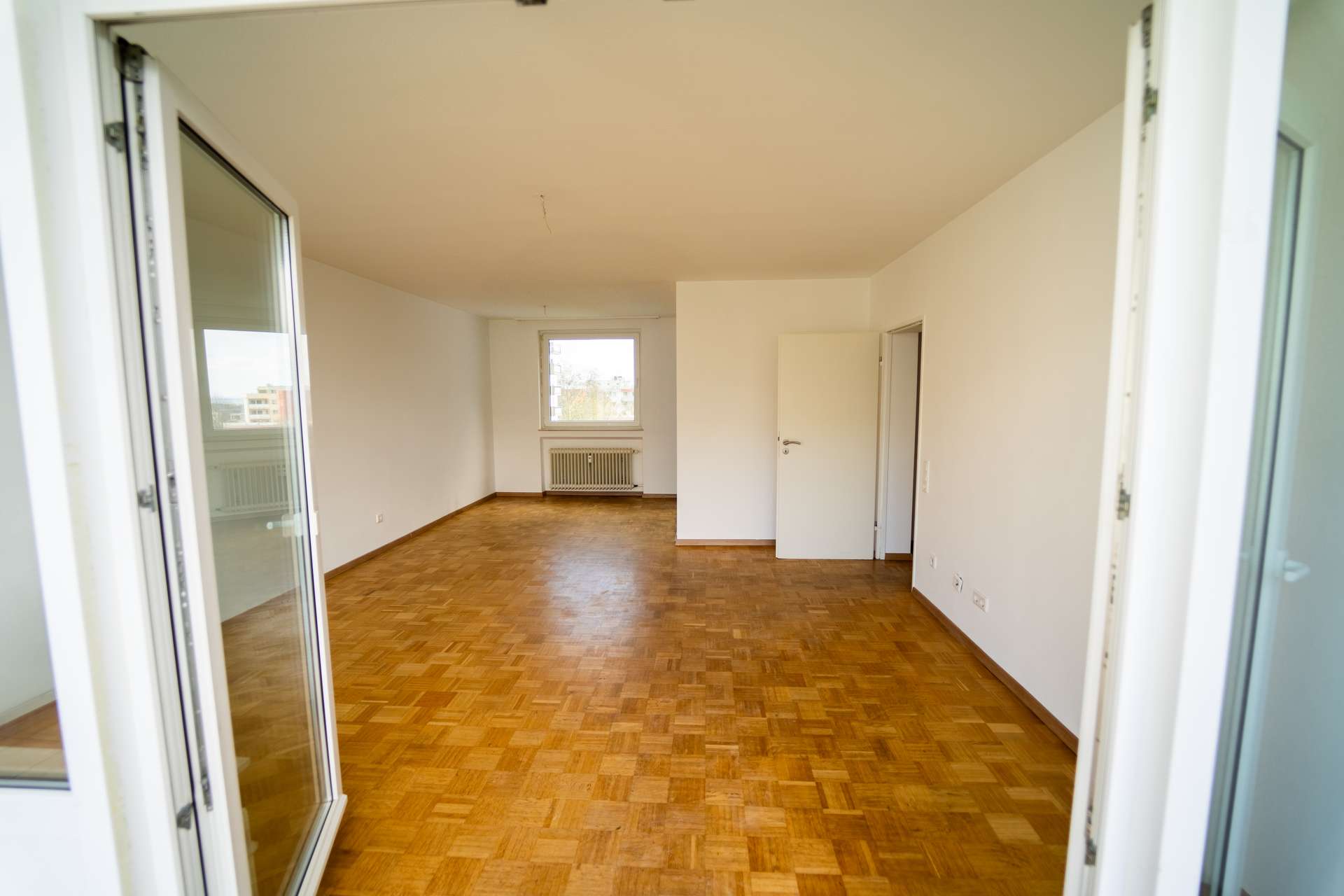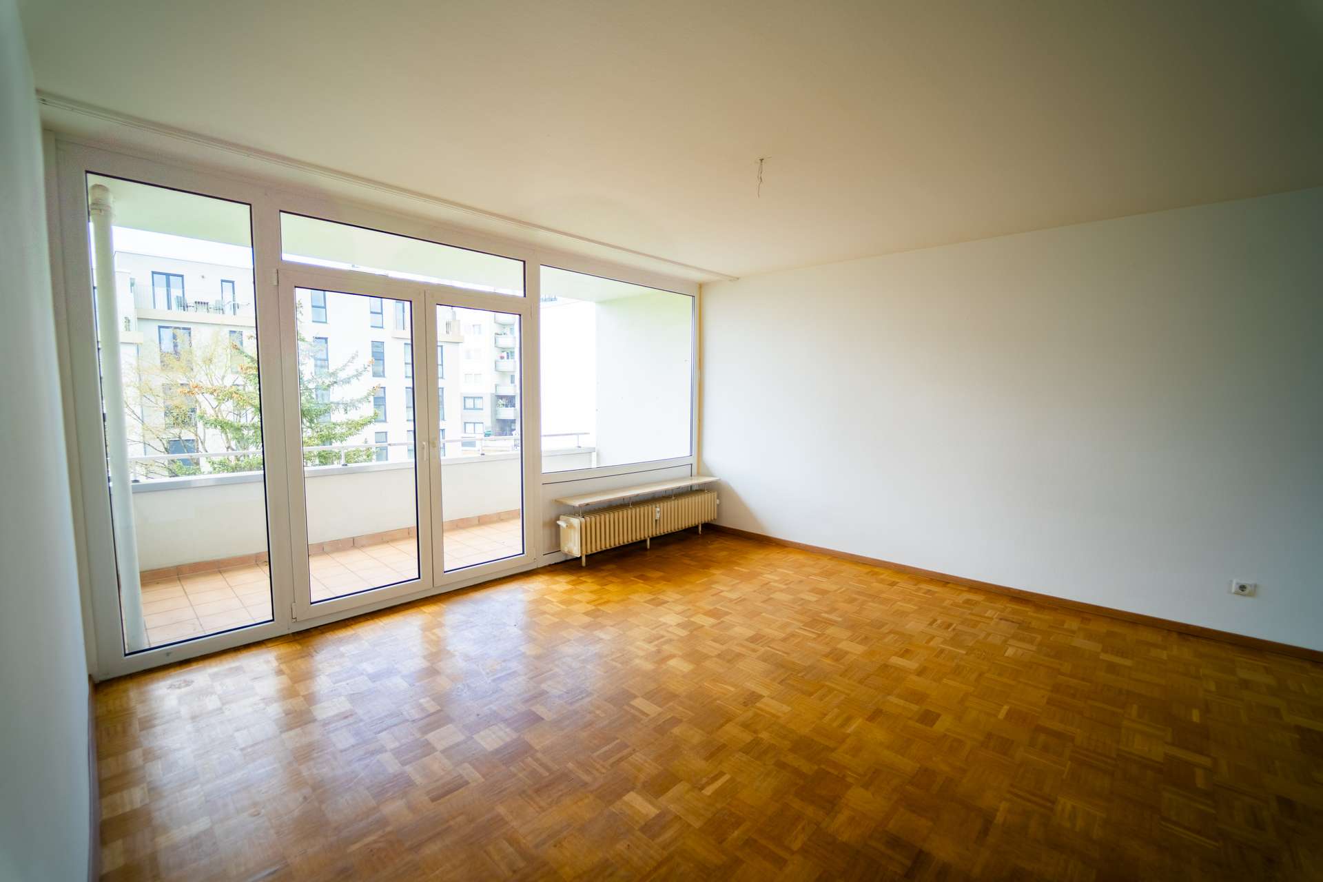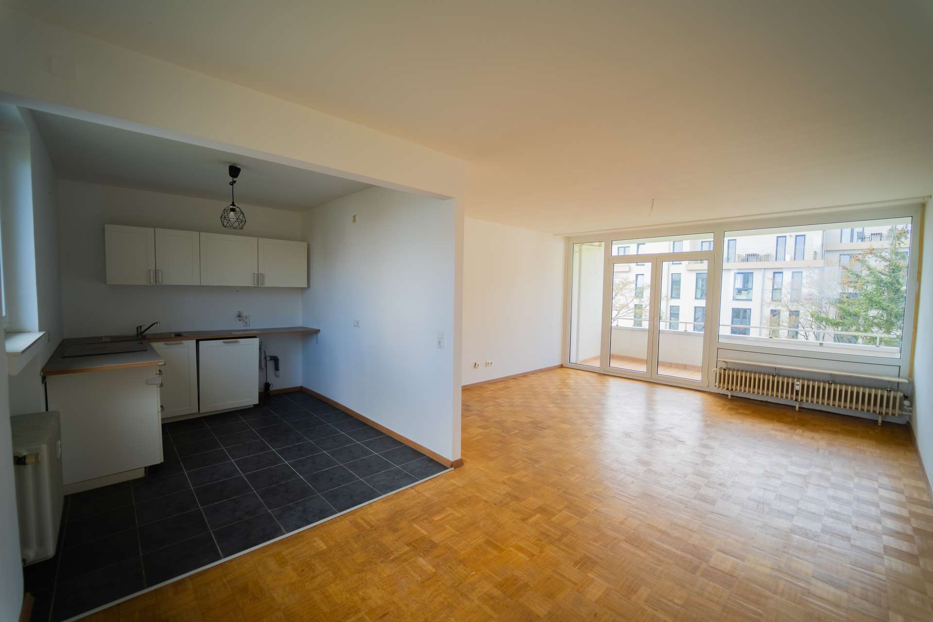Die Wohnung überzeugt durch einen luftigen Wohn-Essbereich mit Zugang zum Balkon, zwei gut proportionierte Schlafzimmer sowie eine separate, tageslichthelle Küche. Das Badezimmer ist hell gefliest und mit einer modernen Dusche ausgestattet. Ein zusätzliches Gäste-WC sorgt für mehr Komfort im Alltag. Der gepflegte Parkettboden verleiht den Räumen Wärme und Charakter, während große Fensterflächen für eine angenehme Helligkeit sorgen. Vom Balkon aus genießen Sie einen schönen Ausblick ins Grüne. Alle wichtigen Einrichtungen – vom Supermarkt über Kindergärten bis hin zum S-Bahn-Anschluss – sind nur wenige Schritte entfernt. Damit ist die Wohnung ideal für Eigennutzer wie auch für Kapitalanleger.